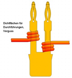 Dazu werden elektrische Durchführungen benötigt, die mit Vergussmasse abgedichtet werden.