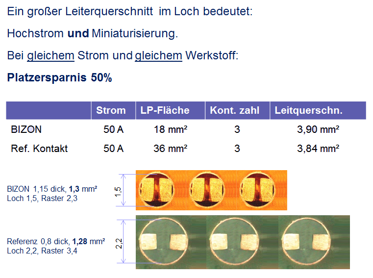 Ein normierter Wettbewerbsvergleich mit beliebigem Strom zeigt den Vorteil des BIZON-Kontaktes.